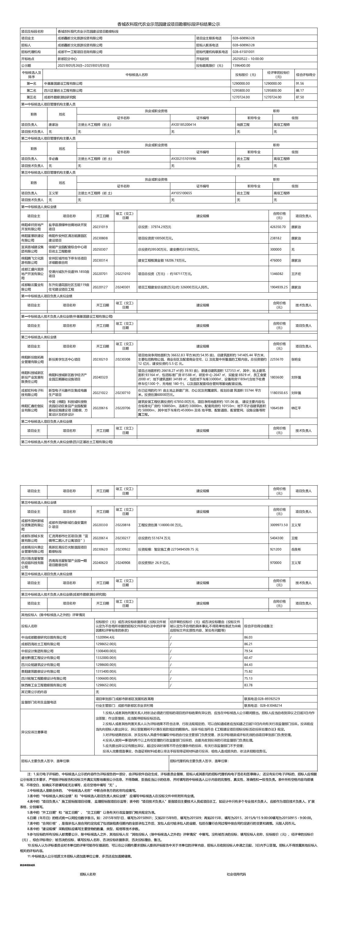 香城农科现代农业示范园建设项目勘察标段评标结果公示